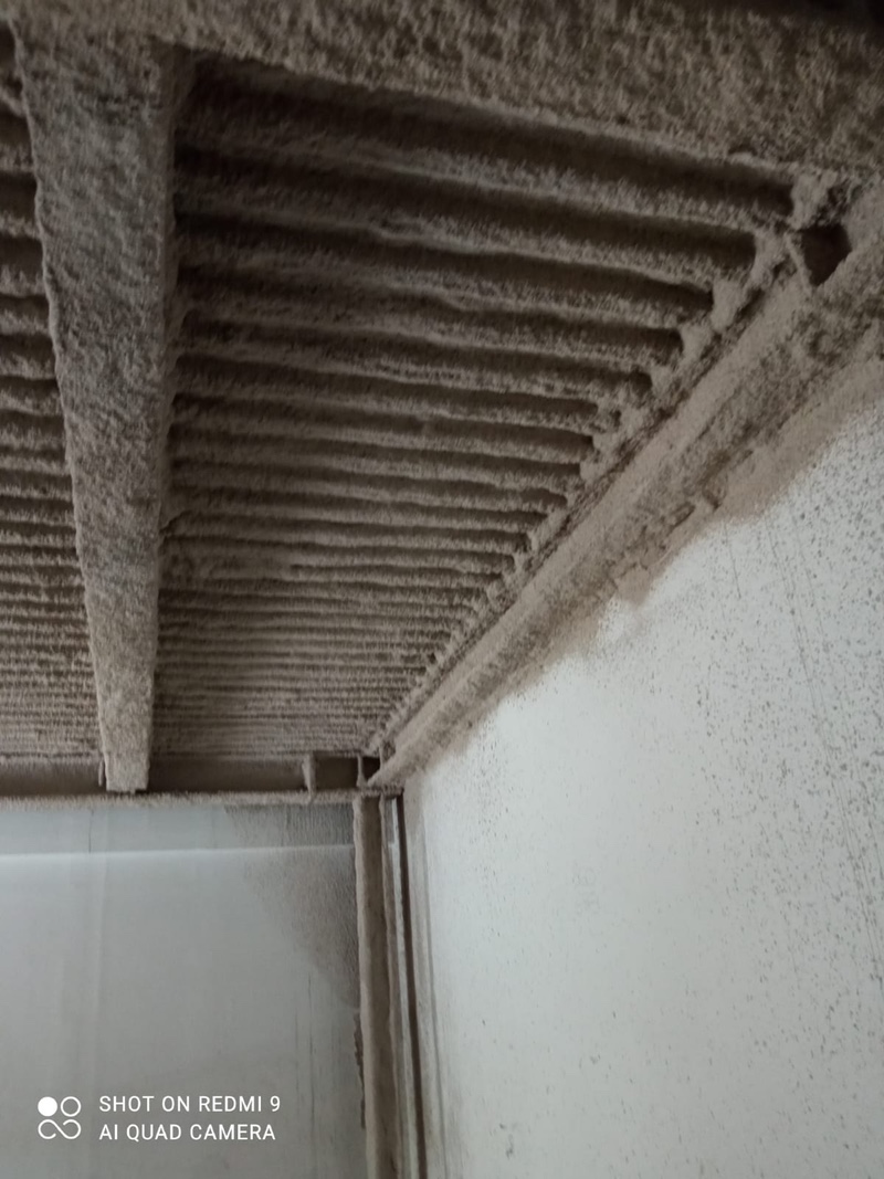 Protecció de forjat d'altell, amb estructura metàl·lica i xapa col·laborant amb morter de perlita.