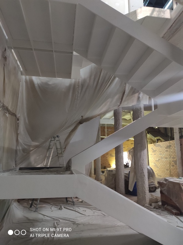 Protecció d'estructura metàl·lica i portant d'escala, mitjançant pintura intumescent al local comercial de Barcelona.